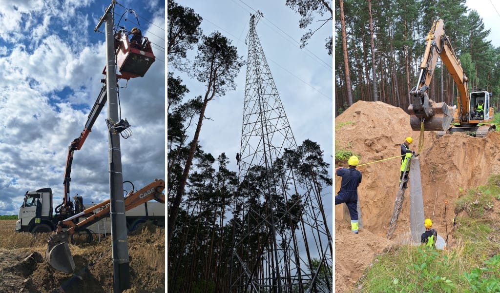 Jednocześnie, na linii elektroenergetycznej 110 kV Świekatowo-Żur wykonaliśmy już 72 z 94 fundamentów. Obecnie realizujemy prace fundamentowe na jednodniowych wyłączeniach napięcia pod istniejącą linią Żur-Tuchola, która będzie w całości zdemontowana na długotrwałym wyłączeniu planowanym na wrzesień. W jej miejsce wybudujemy odcinek dwutorowy linii, zawierający tor prądowy Żur-Tuchola oraz nasz nowobudowany tor Świekatowo-Żur. Prowadzimy także na linii napowietrznej montaż konstrukcji słupów, zarówno na odcinku nadleśnym jak i śródleśnym.
