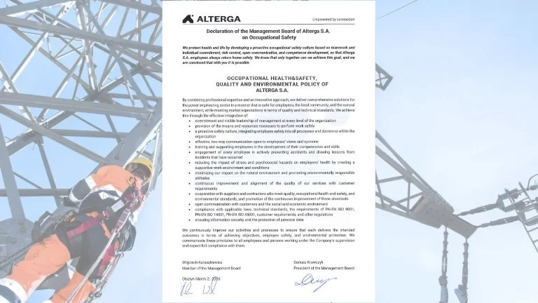 Wir setzen Energieprojekte professionell und termingerecht auf höchstem Qualitätsniveau gemäß den Erwartungen unserer Kunden um, wobei wir hohe Standards der Arbeitssicherheit und Sorgfalt wahren, um die negativen Auswirkungen auf die natürliche Umwelt zu minimieren.